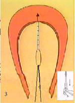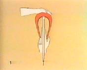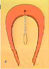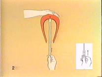 三、 從卡槽中釋放尾絲,輕輕撤退放置器(推桿和套管一并撤出),此時可見兩根尾絲自子宮腔伸出。